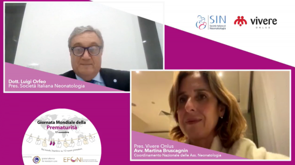 In occasione della Giornata Mondiale della Prematurità, per dare un supporto ai genitori che si trovano ad affrontare una nascita pretermine, il Presidente SIN Dott. Orfeo e l’Avv. Martina Bruscagnin, Presidente Vivere Onlus hanno risposto ai dubbi delle famiglie, con una diretta Facebook, sulle due pagine, il 17 novembre dalle 17.30 alle 18.30. Mamme e papà hanno potuto così fare domande “live” ed avere risposta a tutti i loro dubbi e preoccupazioni.